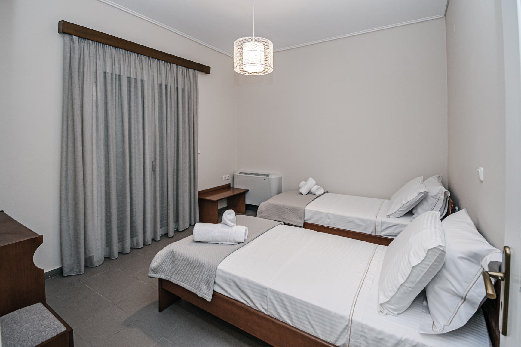 - Μονά κρεβάτια και διπλός καναπές που ανοίγει σε κρεβάτι
